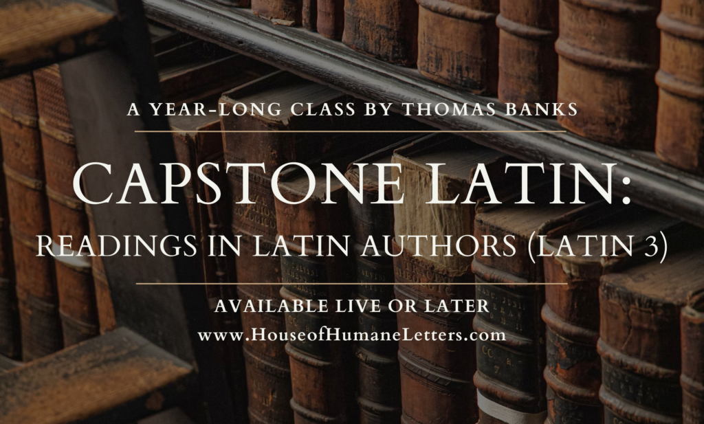 Capstone Latin Placement: Students who wish to enroll in this course must have completed Wheelock’s Latin textbook in Latin Grammar 2 with Dr. Anne Phillips, or they must have equivalent experience in past Latin courses taken elsewhere. Students who hope to transfer from other Latin programs should take the placement text accessible in the link below. Please read carefully and print. We suggest that the parent of the prospective student supervise the exam. When it is completed, scan the finished exam and email it to Mr. Banks at [email protected].Â
